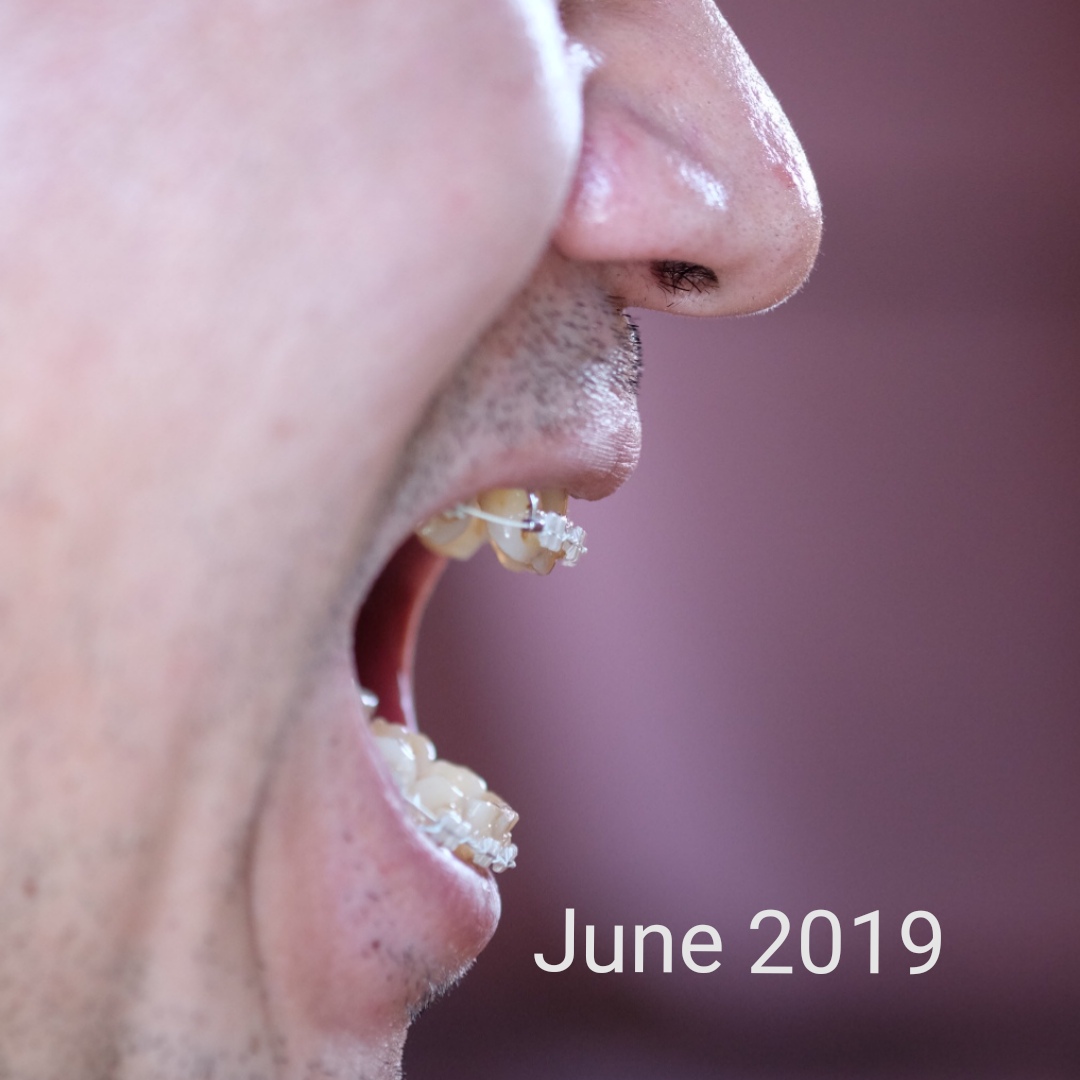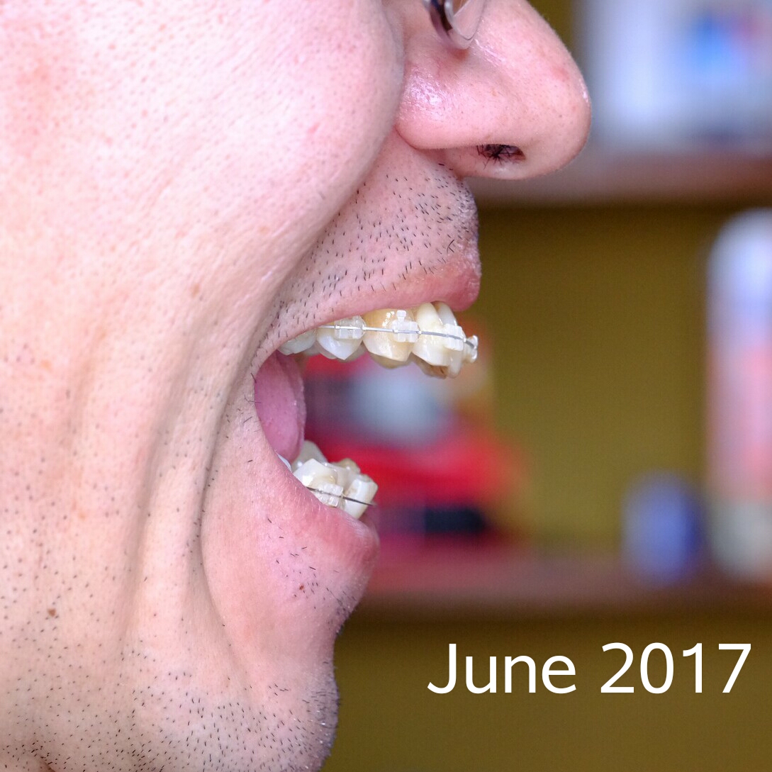 途中で受診があり、ゴムの種類が変更に。この頃から右側のゴムがよく切れるようになり、左は切れなくなった。そして、今度は左側の頬の肉をよく噛むようになって、口内炎に。不思議なことに、右の頬肉は噛まなくなりました。そして、ときどき頬の筋肉(耳の前側)が筋肉痛になるように。