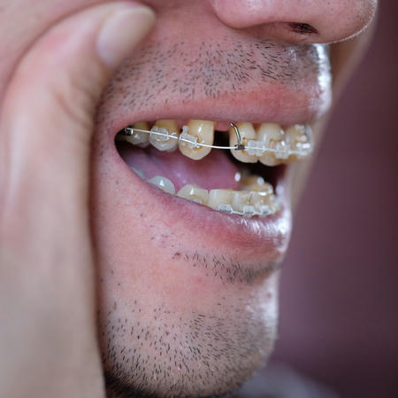 舌の内側、右の金属フックが舌を傷つけて痛くて、大変でした。ゴムはいつも左側が切れていました。