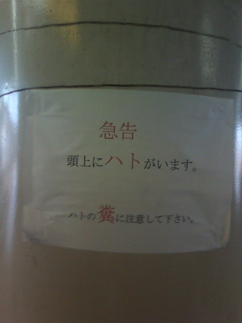 駅のホームに,「ピィピィ,ピィ」っていう鳥の鳴き声を流している場所があって,いつも何の音だろうと思っていた.よくよく見るとわざわざスピーカーを設置して,小さな音で鳥の鳴き声を流している.周囲を見回すとこの張り紙が.「急告」