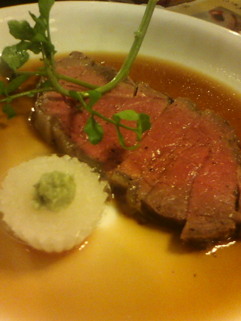 こちらは一時間待った名物ローストビーフ.わさびが効いててうまかった.