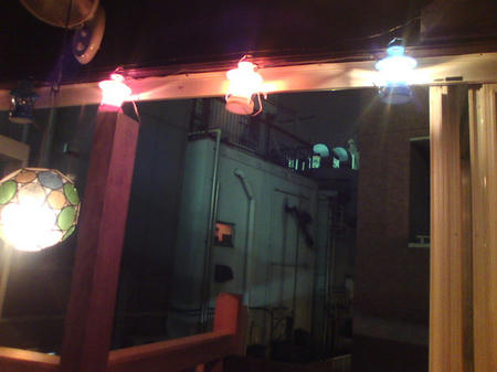 2軒目にハンサム食堂ってタイ料理店に行ったら居心地よくて,タイの民家の座敷で呑んでる気分に.吹き抜けの窓から見える景色はバンコクの安宿の窓から見える風景そっくりで.