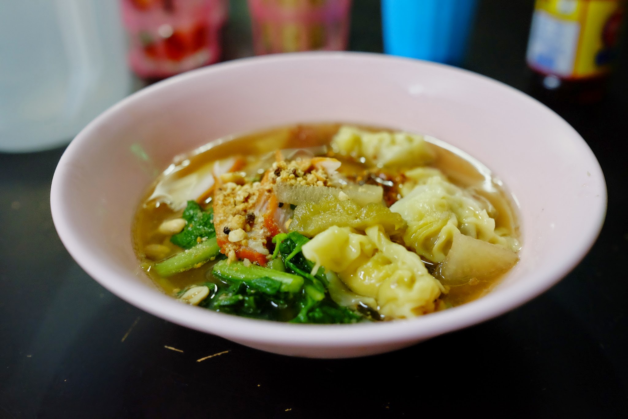ところで、この店の上記4種の調味料の、唐辛子のパウダーが異様に辛いです。いつも、タイでは小さじ一杯程度であまり辛くならないのに、この店の場合小さじ一杯で激辛になってしまうので、はじめての時は失敗してスープを飲めなくしてしまいました。